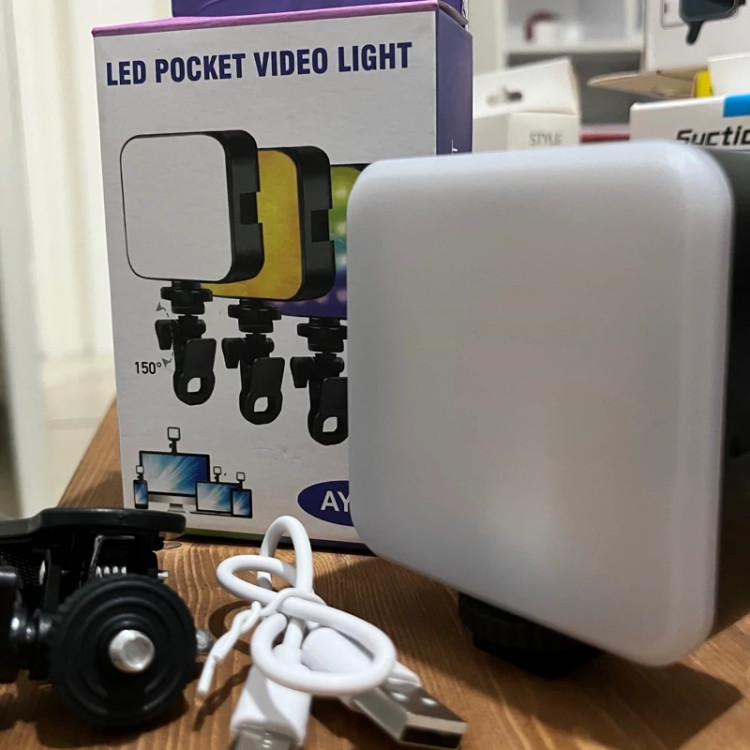 دیدن محصولات مرتبطمشخصات فنی نور LED جیبی ویدیویی: مدل: AY-83 تعداد LED: • نور سهرنگ: 64 عدد •. RGB: عدد72 • نور سفید: 49 عدد حداکثر توان خروجی: 5.5 وات زاویه پرتو نور: 60 درجه طول عمر LED: 5000 ساعت شار نوری: 800 لومن دمای رنگ: 3200K-6500K شاخص بازتولید رنگ (Ra): ≥90% رابط اتصال: Type-Cتایپ سی طراحی: رابط سرد (Cold shoe interface) چرخش 150 درجه پایه تنظیم