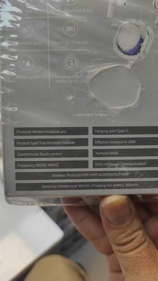 تجربه صدایی شفافتر از همیشه با هندسفری ایرپاد بلوتوث 5.0 برای اتصال سریع و پایدار کیس شفاف با نمایشگر LED دیجیتال برای دیدن میزان شارژ صدای فوقالعاده با جزئیات بالا کروفون داخلی برای مکالمهای شفاف و بدون نویز طراحی فانتزی و سبک، مناسب استفاده طولانیمدت دارای رنگ های آبی صورتی سبز مشکی سفید با این هندزفری، هم خوشصدا باشید هم خوشاستایل! • مدل محصول: Ultrapods pro • نوع محصول: True Wireless headset (هدفون بیسیم واقعی) • حالت کنترل: Touch control (کنترل لمسی) • فرکانس: 100HZ-10KHZ • پروتکل بیسیم: HSP / HFP / A2DP / AVRCP / I5PP • پورت شارژ: Type-C • فاصله مؤثر بیسیم: 15-20 متر • قطر درایور (Trempet): 8MM • ENC: Intelligent Communication (کاهش نویز هوشمند) • باتریها: هدفون 30mAh، باتری محفظه شارژ 300mAh