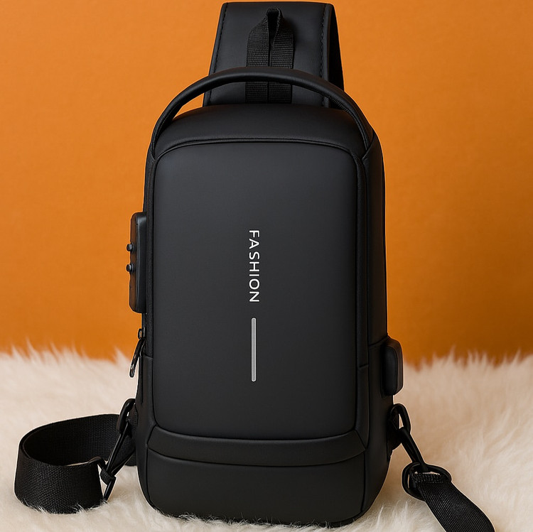 کیف کراسبادی یا بادی بگ مشکی وارداتی با طراحی مینیمال و امکانات کاربردی از برند فشیون fashion قیمت: فقط ۵۸۵/ از سایت) جنس پارچه: چرم صنعتی مات – ظاهری شیک، لمس نرم، و مقاوم در برابر خطوخش قفل رمزدار برای محافظت از وسایل شخصی پورت USB برای شارژ آسان موبایل و گجتها در طول روز بند قابل تنظیم و جداشونده با قلاب فلزی بادوام جیب زیپی پشتی برای دسترسی سریع نوشتهی عمودی “FASHION” با فونت برجسته برای جلوهای خاص زیپهای فلزی با کیفیت بالا و عمر طولانی مناسب برای استفاده روزمره، استایلهای کژوال، سفرهای شهری و جلسات کاری ، آیپد و تبلت ، پشت موتور —