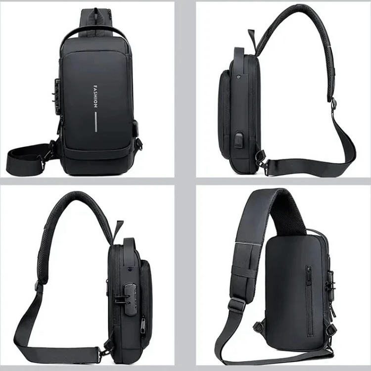کیف کراسبادی یا بادی بگ مشکی وارداتی با طراحی مینیمال و امکانات کاربردی از برند فشیون fashion قیمت: فقط ۵۸۵/ از سایت) جنس پارچه: چرم صنعتی مات – ظاهری شیک، لمس نرم، و مقاوم در برابر خطوخش قفل رمزدار برای محافظت از وسایل شخصی پورت USB برای شارژ آسان موبایل و گجتها در طول روز بند قابل تنظیم و جداشونده با قلاب فلزی بادوام جیب زیپی پشتی برای دسترسی سریع نوشتهی عمودی “FASHION” با فونت برجسته برای جلوهای خاص زیپهای فلزی با کیفیت بالا و عمر طولانی مناسب برای استفاده روزمره، استایلهای کژوال، سفرهای شهری و جلسات کاری ، آیپد و تبلت ، پشت موتور —